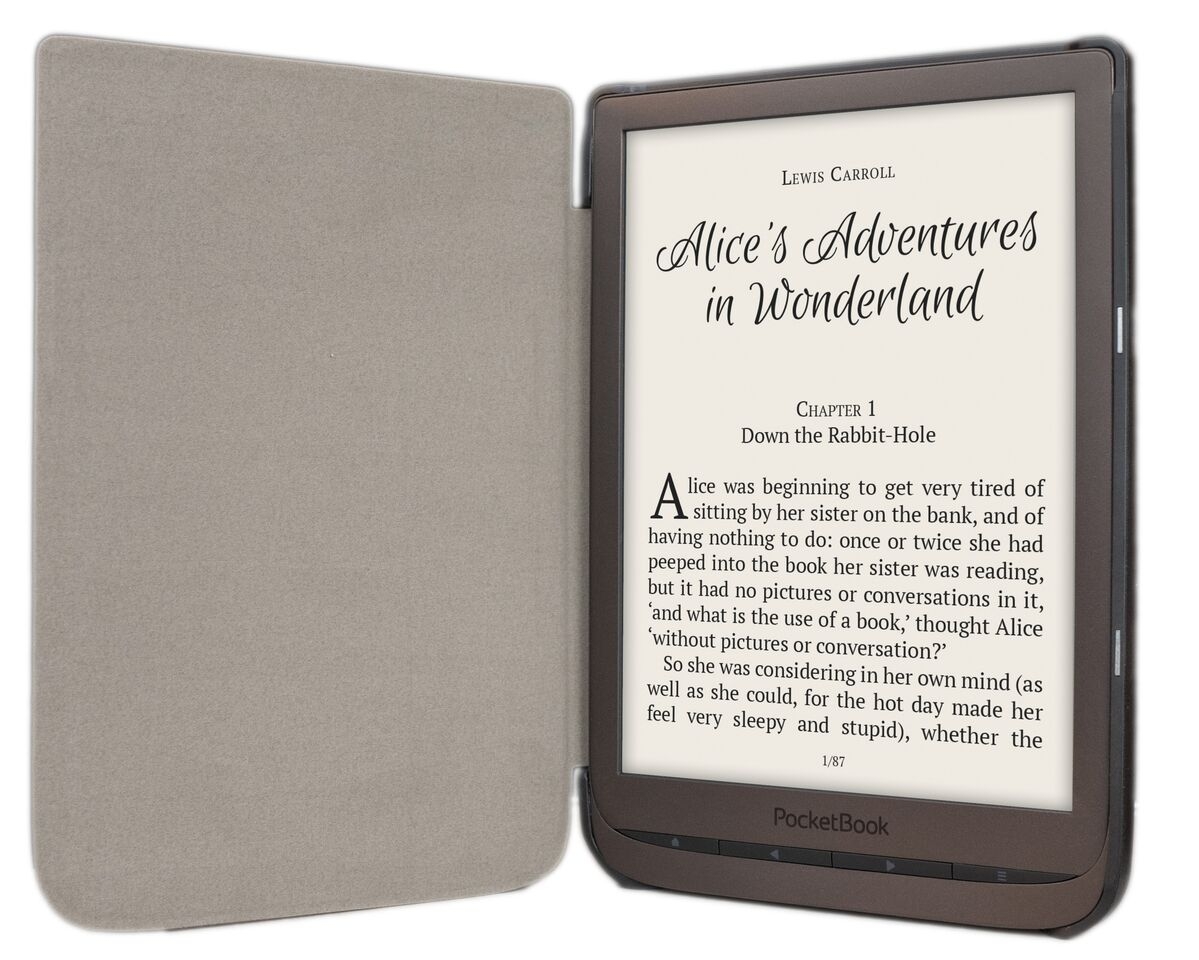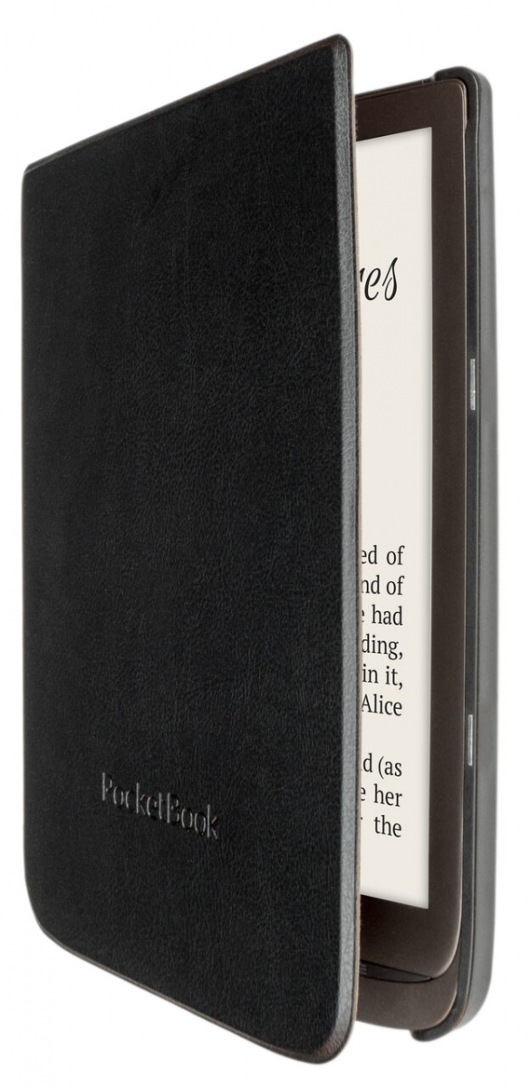 Magnetyczne zamknięcie czytnika powoduje automatyczne jego przejście w stan uśpienia (tzw. "sleep mode") oraz jego automatyczne budzenie po otwarciu etui. Na przedniej okładce znajduje się napis PocketBook, który nadaje futerałowi elegancji. Materiał jest bardzo solidny, a zatem odporny na drobne zachlapania, a także łatwy w czyszczeniu. Klasyczna czerń z pewnością zostanie pokochana przez fanów minimalizmu. W połączeniu z ekoskórą tworzy niezwykle zgrany duet.