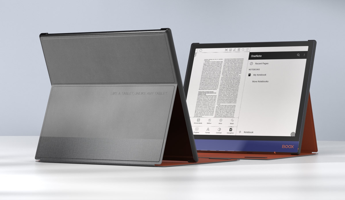 Poza przyciągającym wzrok designem, etui Onyx Boox Note Air oferuje funkcjonalne rozwiązania. Składana podstawka pozwala na korzystanie z czytnika bez użycia rąk.
