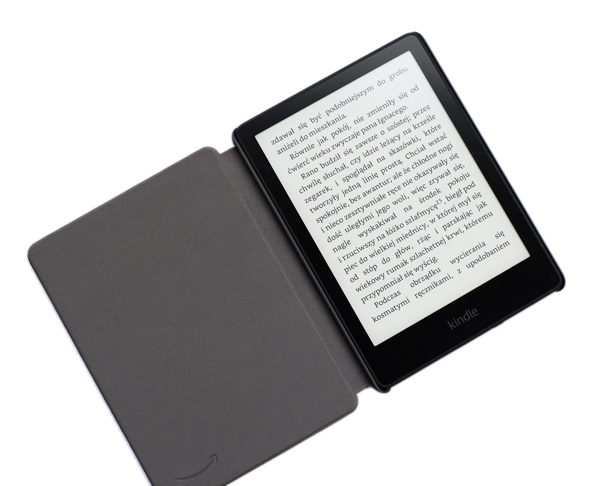 - Otwiera się jak książka, automatycznie budząc Kindle Paperwhite 5 po otwarciu i usypia czytnik po zamknięciu.