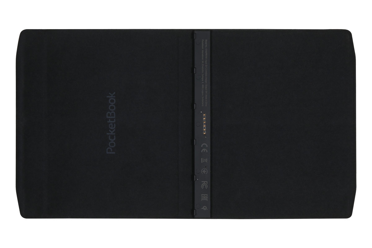 Pokrowiec montowany jest do specjalnie stworzonego panelu w tylnej części czytnika PocketBook Era. Tam dostosowane piny etui łączą się z czytnikiem, co umożliwia ładowanie indukcyjne urządzenia. Wystarczy, że Twój czytnik z założoną okładką położysz na bezprzewodowej ładowarce, aby po kilku godzinach ponownie cieszyć się długimi tygodniami czytania.