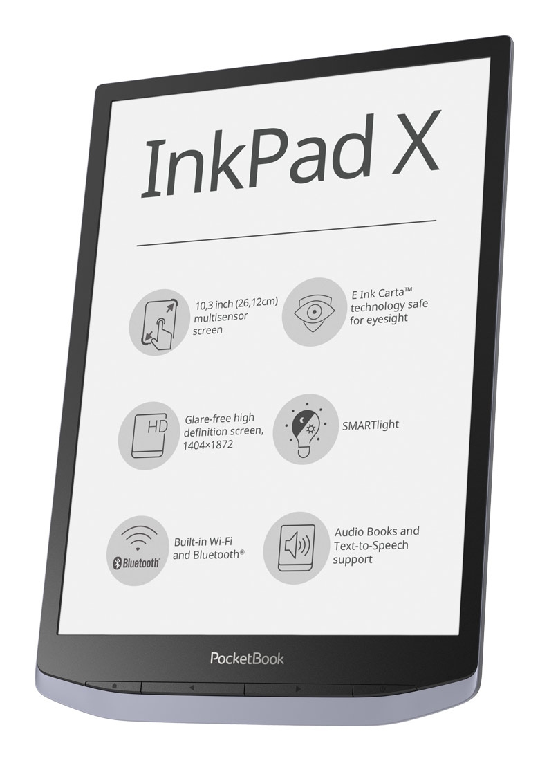 PocketBook InkPad X to doskonały towarzysz biznesowy. Dokumenty, raporty, sprawozdania... Od teraz wszystko to możesz wyświetlać na 10,3-calowym ekranie stworzonym do plików w formacie PDF. A wieczorem będą czekały na Ciebie tysiące e-książek w rozdzielczości 227 dpi. Przyjemne z pożytecznym - to myśl przewodnia nowego PocketBook InkPad X.