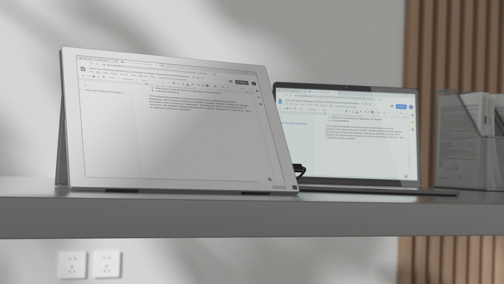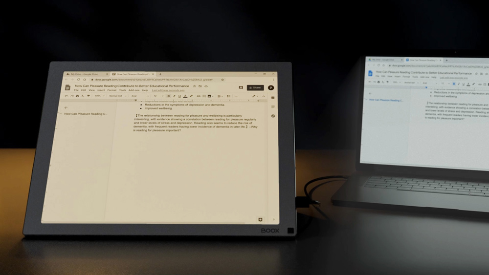 13,3-calowy ekran E-Ink z wysoką rozdzielczością 2200 x 1650 i 207 dpi redukuje światło niebieskie i zmęczenie oczu.