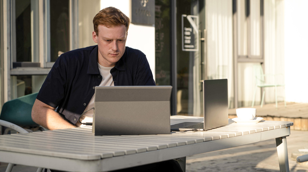 *Sprawdź, czy porty (USB typu C i HDMI) w Twoim urządzeniu obsługują monitory dodatkowe, podłączając najpierw urządzenia do innego monitora. Karty graficzne AMD nie są na razie obsługiwane.