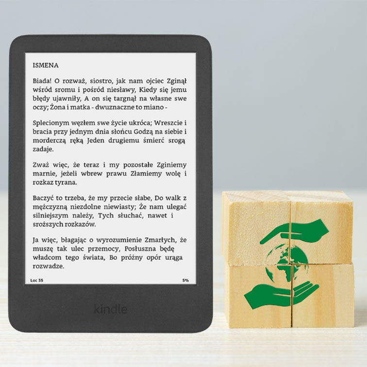 Kindle 11 został wykonany w 35-70% z materiałów recyklingowych. Kupując czytnik Kindle, nie tylko zapewniasz sobie komfort, ale dbasz też o środowisko.
