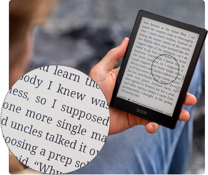 Dzięki zoptymalizowanej konstrukcji, Poke 5 może pochwalić się najlepszym stosunkiem wielkości ekranu do obudowy. Prawdopodobnie jest to najmniejszy czytnik e-ink z ekranem 6-cali, jaki do tej pory stworzono. Jednocześnie nie ma sobie równych, pod względem parametrów i funkcjonalności. Został zaprojektowany, aby maksymalnie zwiększyć poręczność, mobilność i komfort czytania.