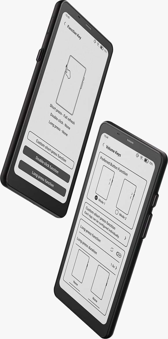 Konfigurowalny przycisk funkcyjny ułatwia nawigację, od cofnięcia się lub pełnego odświeżenia, po dostęp do centrum E Ink czy zrobienie zrzutu ekranu. Możesz także dostosować przyciski głośności, aby przewracały strony lub działały jako przyciski przewijania.
