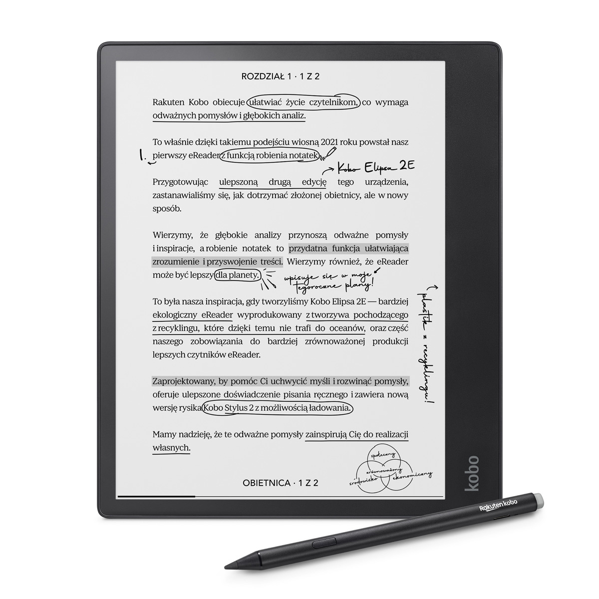Takie połączenie czytnika i e-notatnika jest w stanie zastąpić całą bibliotekę książek, stertę dokumentów i nie jeden planer, kalendarz, zeszyt czy brudnopis. Zmiana na Kobo Elipsa 2E to wybór wygodnego rozwiązania, gdzie nie tylko wszystke zapiski będą posegregowane, łatwe do znalezienia i, co najważniejsze, zebrane w jednym miejscu.