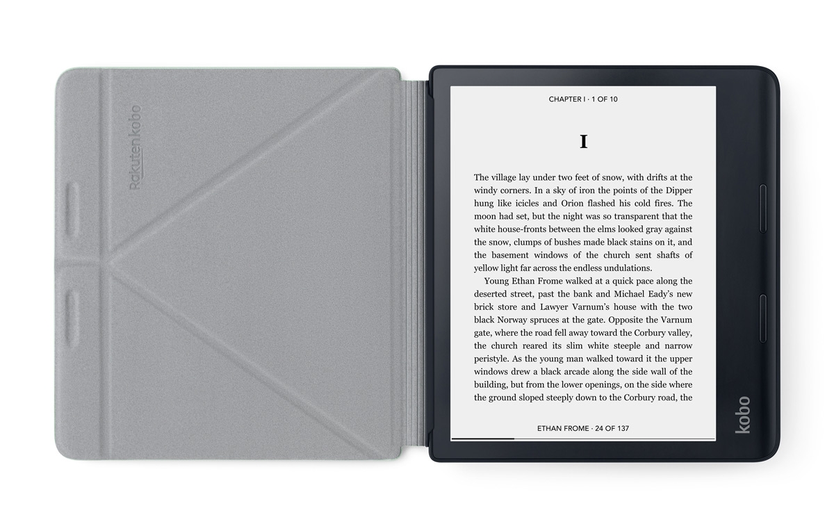 Dzięki obsłudze funkcji Sleep Mode, Kobo Sage automatycznie wybudza się po otwarciu etui oraz wygasza po zamknięciu. Takie rozwiązanie jest bardzo wygodne, a zarazem zmniejsza zużycie baterii w czytniku.