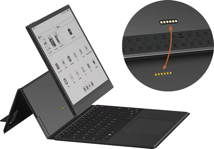 Wysokiej klasy etui magnetyczne z klawiaturą* pozwala na ułożenie Tab Ultra C Pro pod trzema kątami, tym samym zapewniając wrażenia podobne do standardowych laptopów. Z czytnika możesz wygodnie korzystać w domu, biurze czy w trakcie podróży. Pokrowiec zawiera pełnowymiarową klawiaturę z wbudowanym touchpadem, który ułatwia nawigację, oferuje inteligentne gesty oraz umożliwia szybkie wykonywanie zadań.